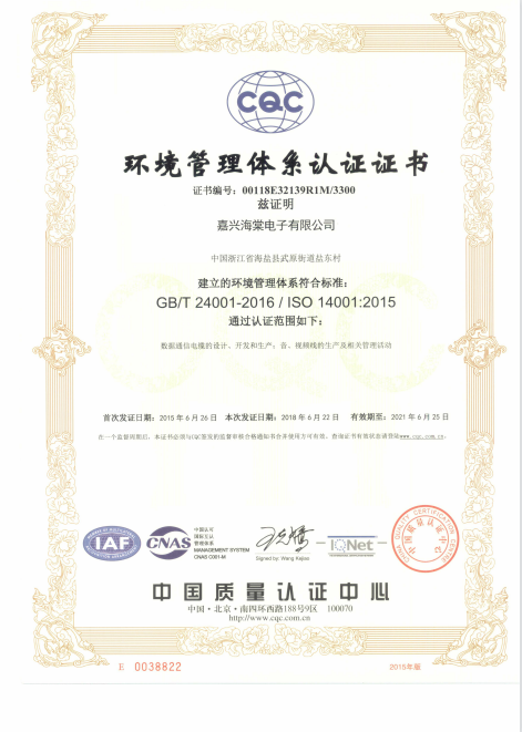 環(huán)境體系證書