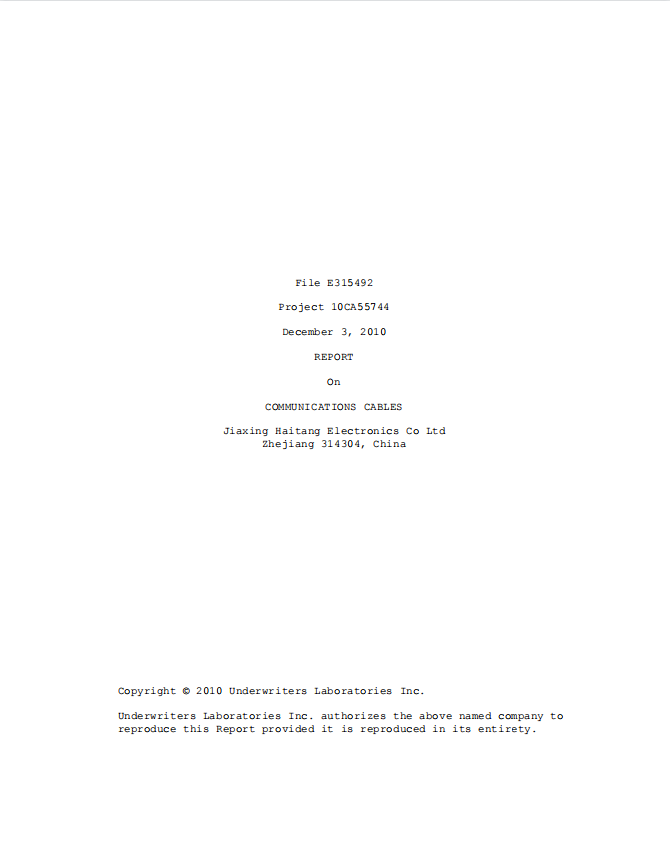 Communications Cable UL認證