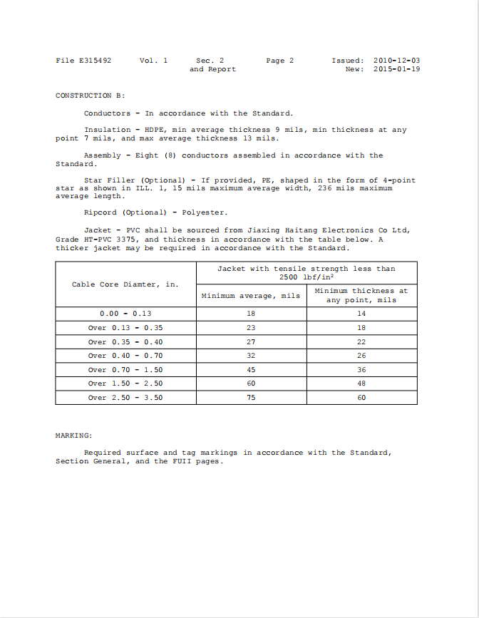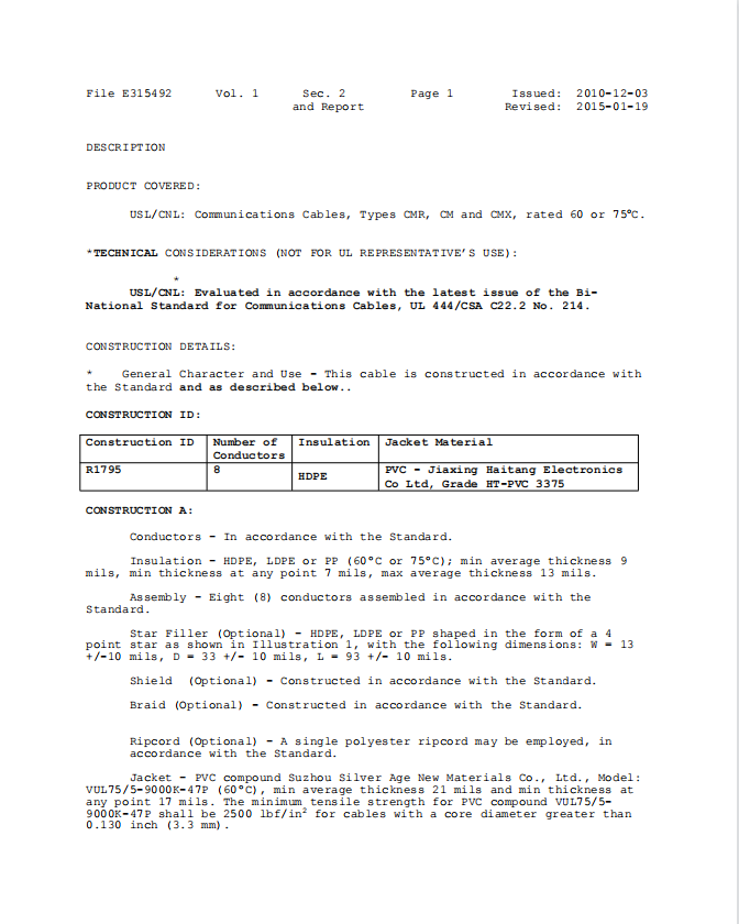 Power-Limited Circuit Cable-E475167UL認證