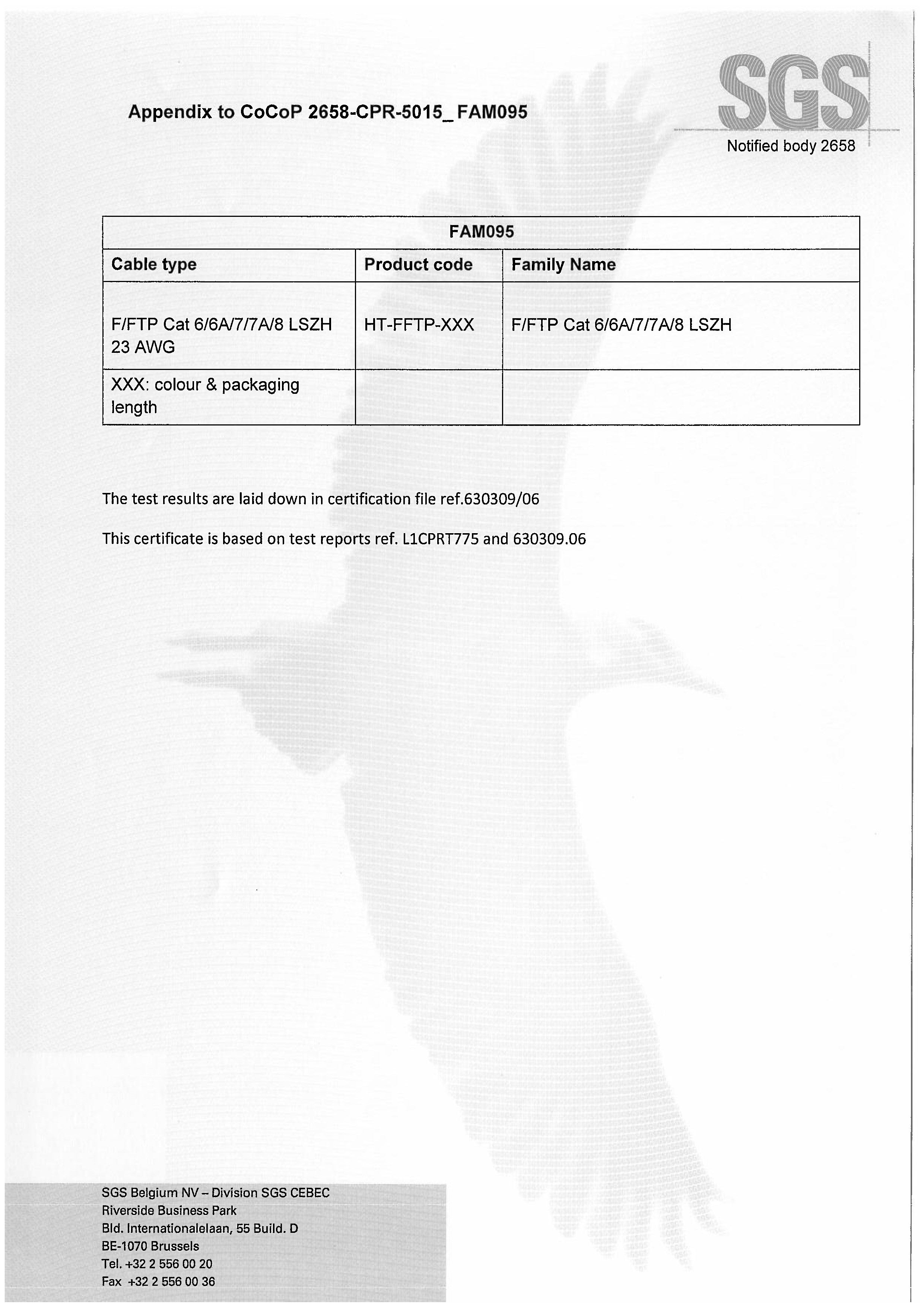 FFTP Cat 66A77A8 LSZH SGS CPR B2級