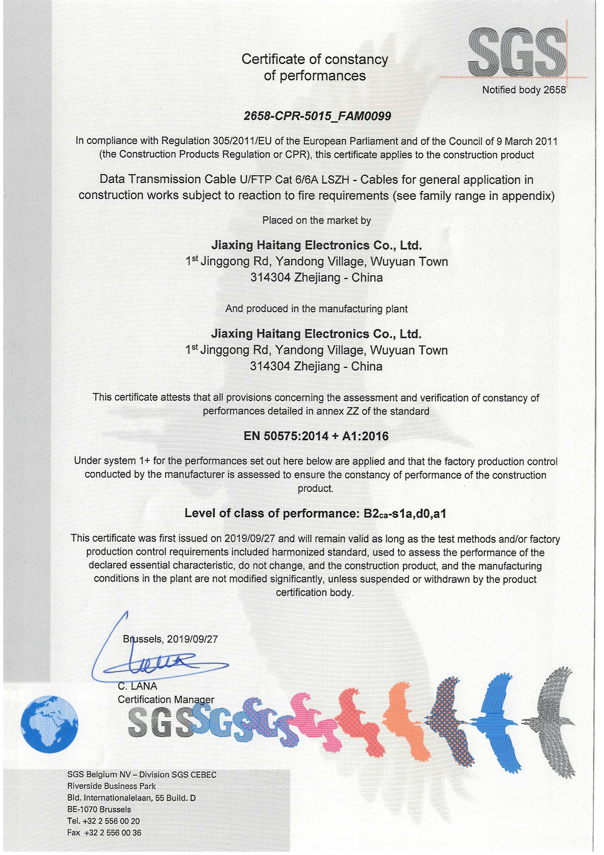 UFTP CAT6 6A LSZH SGS CPR B2級(jí)認(rèn)證
